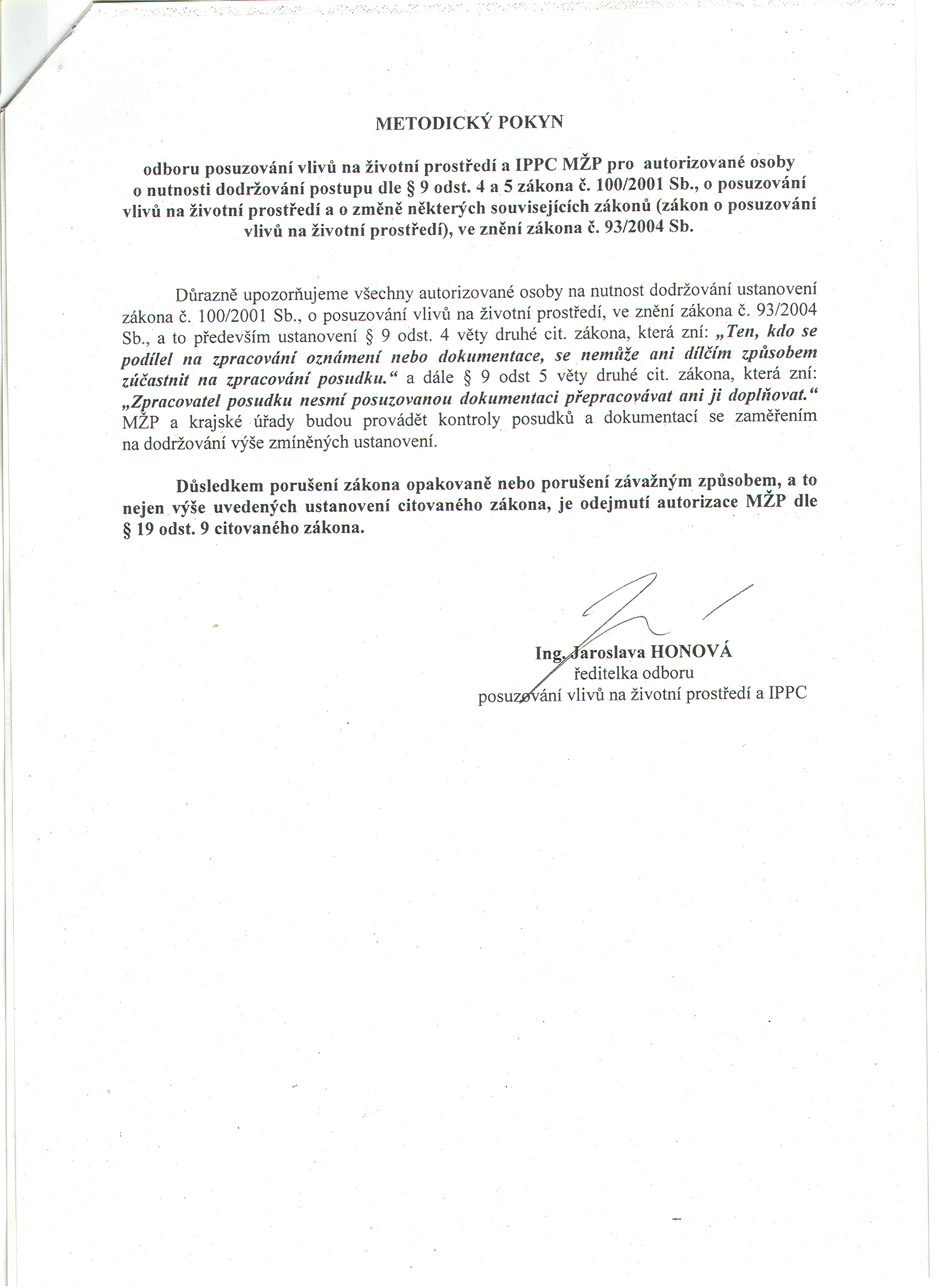 Metodické sdělení MŽP ke zpracování posudku